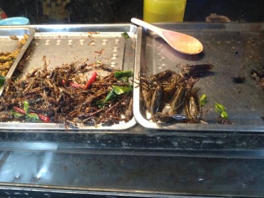 食事ははじめ慣れないものが多く苦手でしたが徐々に克服しました。カンボジアのバッタンバンでの食生活では、非常によくあるのがレモングラスの茎が入った料理です。その他にも、日本では食感的に出会うことの少ない調理法の、尖った鳥の骨のはいった料理などもあり少し苦労しました。イギリスやアメリカ、ヨーロッパなどの食生活と比べても、カンボジアの田舎ということもあり、昆虫食や香草の伝統的な調理法など、慣れるのに時間を要する食事に当初苦労しました。