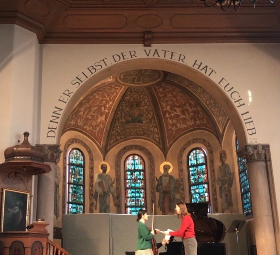 私は大学の時の授業で初級コースでドイツ語をとっていました。週に2回、文法とスピーキングだったのでドイツ語を使って喋る抵抗は少しなくなっていました。日本にいる時はなるべくお金をかけたくなかったので、NHKのラジオ講座で毎日きちんと文章を暗記するようにしていました。音大生は耳からの情報処理が得意なので、聞いて覚えるのが早いと思います。ドイツに行ってからは、平日毎日語学学校に行って本格的に始めました。