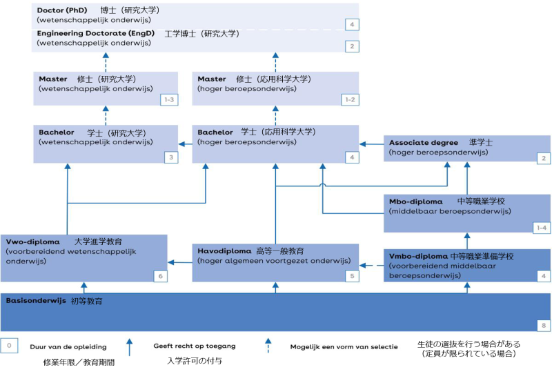 (出典)オランダの教育制度図 オランダ高等教育国際協力機構(Nuffic) に日本語訳を追加