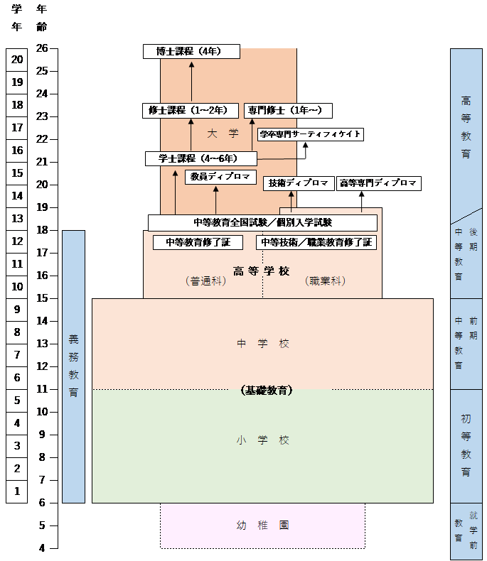 文部科学省、世界の学校体系(ブラジル連邦共和国)をもとに作成